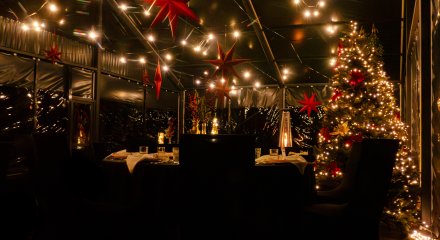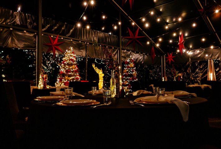 • Organizację wyjątkowej Wigilii firmowej nad brzegiem jeziora — w niezwykłej scenerii zimowych namiotów eventowych, pełnych blasku i ciepła.