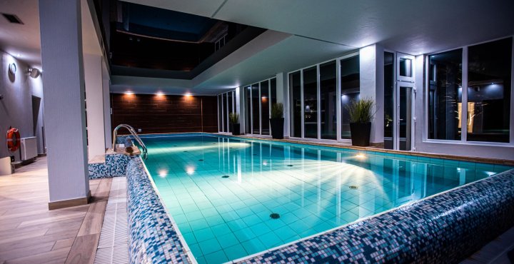 Gdy zapada zmrok, przychodzi czas na Basen nocą – dodatkowy dostęp do strefy wellness w godzinach 21:00–23:00. Pływanie w półmroku, ciepłe jacuzzi i chwila w saunie suchej zamykają dzień w najprzyjemniejszy sposób. Wieczorny rytuał rozgrzewa, uspokaja oddech i porządkuje myśli, a w hotelu robi się cicho i kameralnie. To przestrzeń, w której można zwolnić, wejść w rytm wody, dać odpocząć ramionom i poczuć, jak spada napięcie całego tygodnia. W tej porze wszystko jest łagodniejsze: światło, dźwięk, tempo. Znika poczucie pośpiechu, a zostaje miękkość, która ułatwia sen. Ten wieczorny przedział bywa dla wielu gości punktem kulminacyjnym dnia. Ciemność za panoramicznymi przeszkleniami podkreśla lustro jeziora, a w środku panuje kojąca cisza. To doskonałe tło na kilka długości basenu w równym tempie i krótkie zanurzenie w jacuzzi, które staje się małym rytuałem powrotu do siebie.